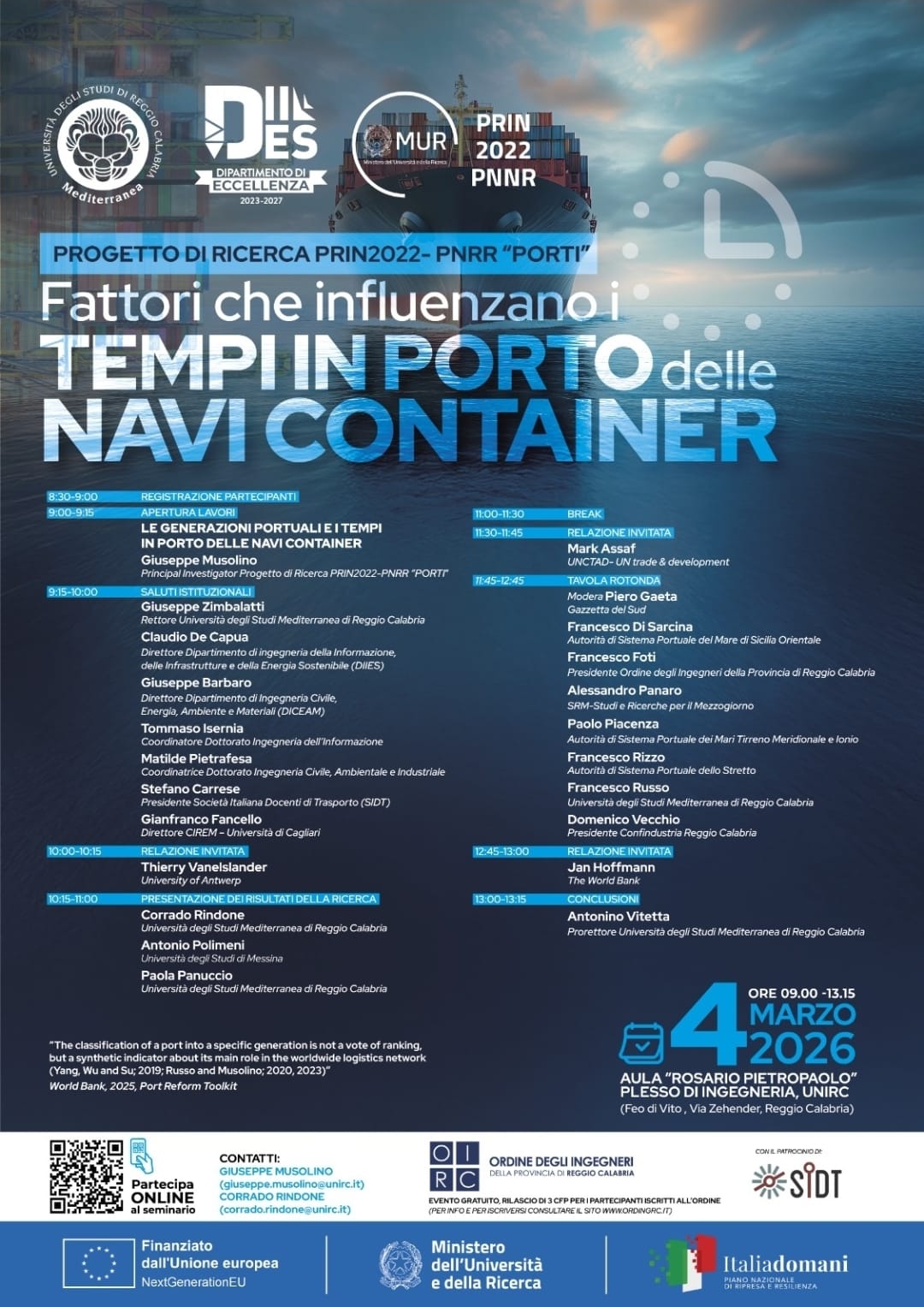 04_03_2026 Seminario: Fattori che influenzano i tempi in porto delle navi container