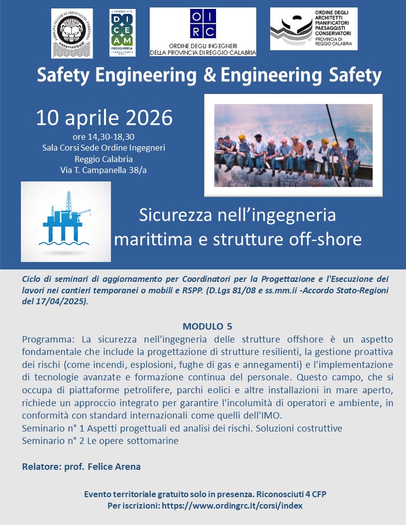 10_04_26 Modulo n.5: Sicurezza nell’ingegneria marittima e strutture off-shore