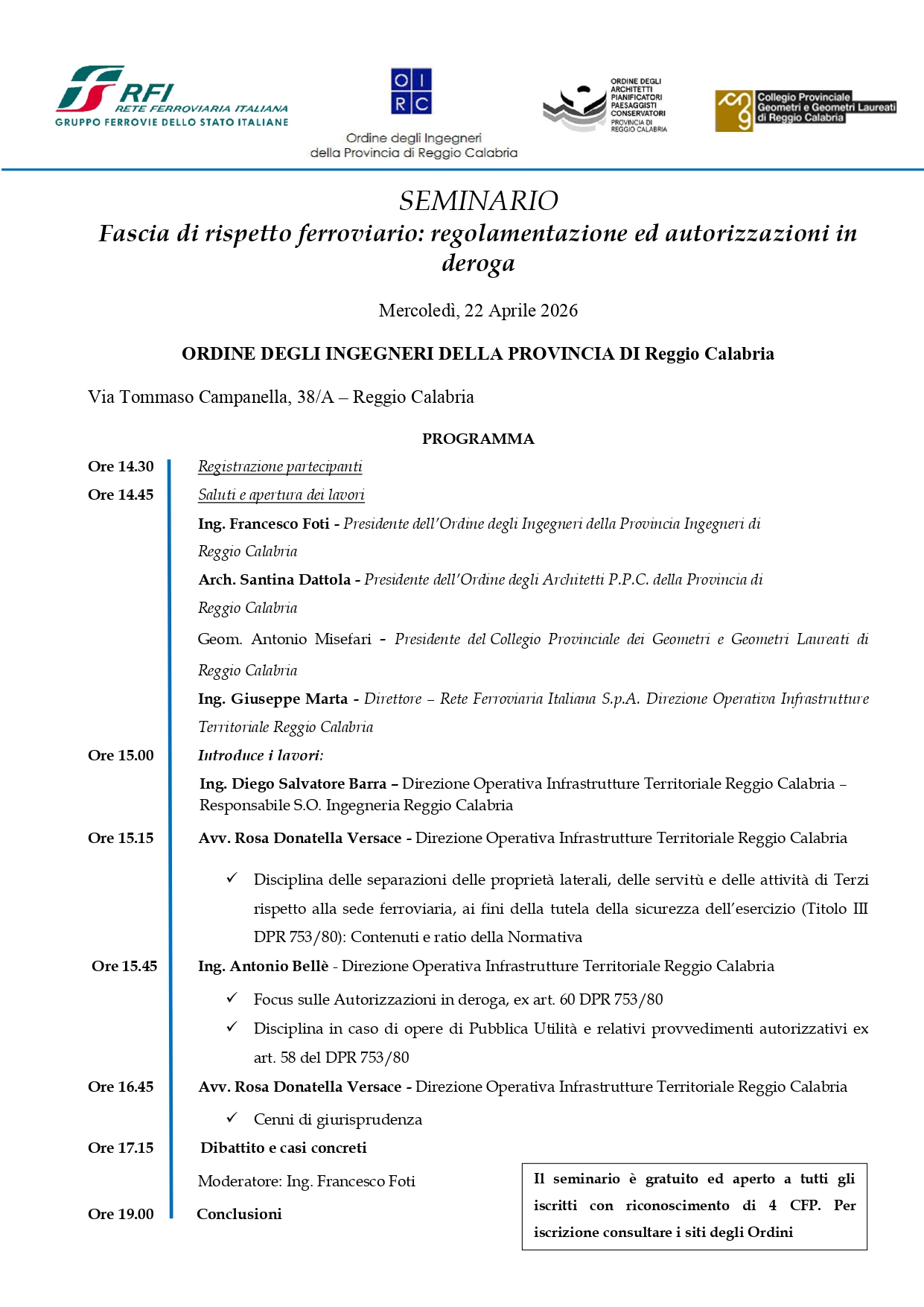 ORDINE DEGLI INGEGNERI DELLA PROVINCIA DI Reggio Calabria Via Tommaso Campanella, 38/A – Reggio Calabria