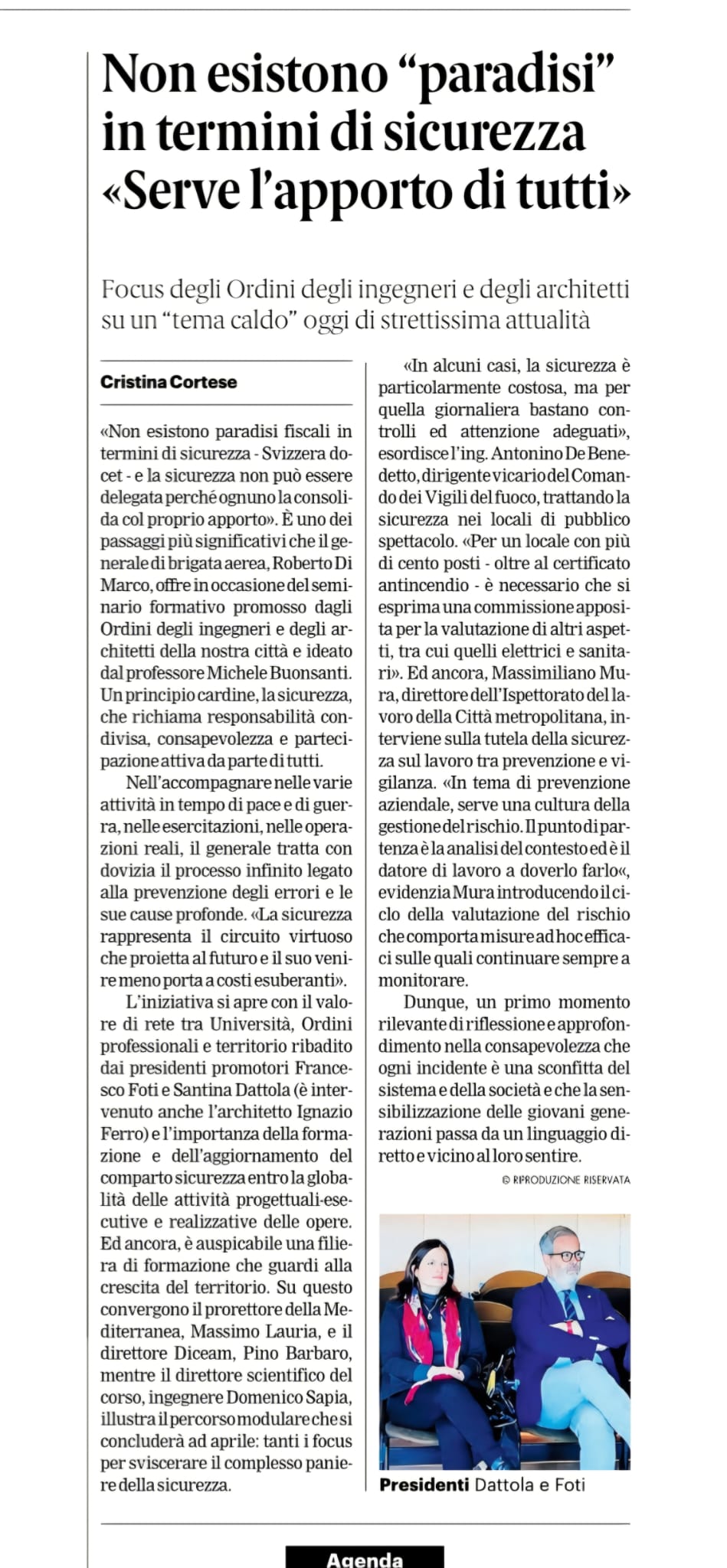 Non esistono "paradisi" in termini di sicurezza - "Serve l'apporto di tutti"