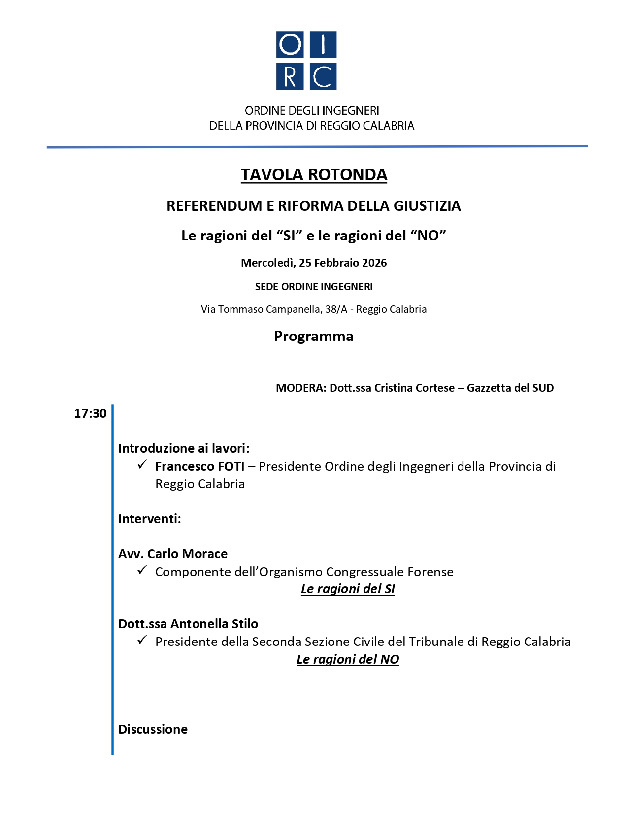 TAVOLA ROTONDA REFERENDUM E RIFORMA DELLA GIUSTIZIA - Le ragioni del “SI” e le ragioni del “NO”