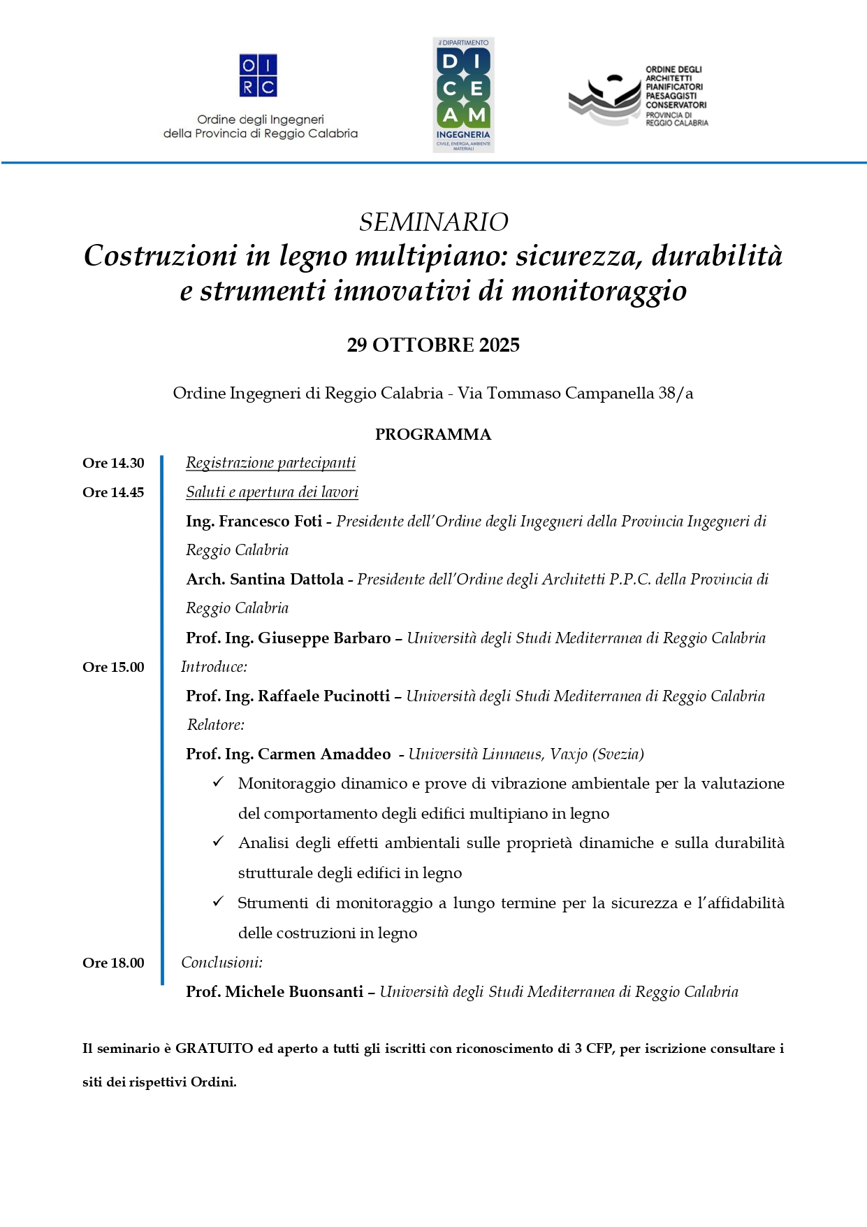 29 OTTOBRE 2025 - Ordine Ingegneri di Reggio Calabria - Via Tommaso Campanella 38/a