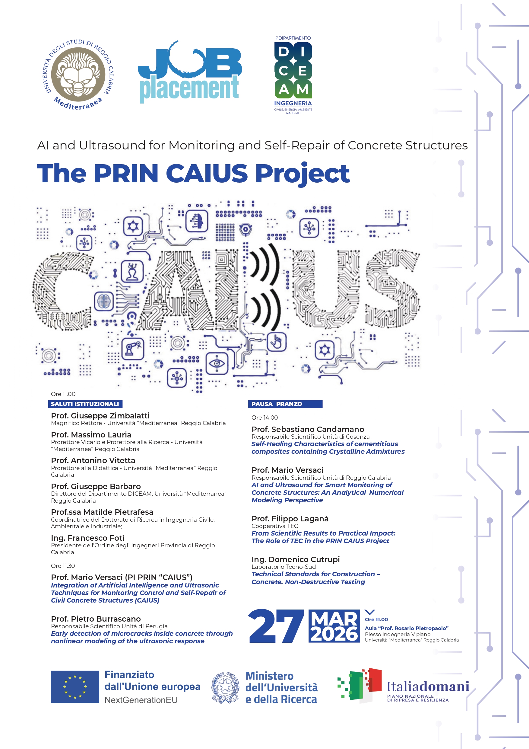 27_03: AI and Ultrasound for Monitoring and Self-Repair of Concrete Structures The PRIN CAIUS Project